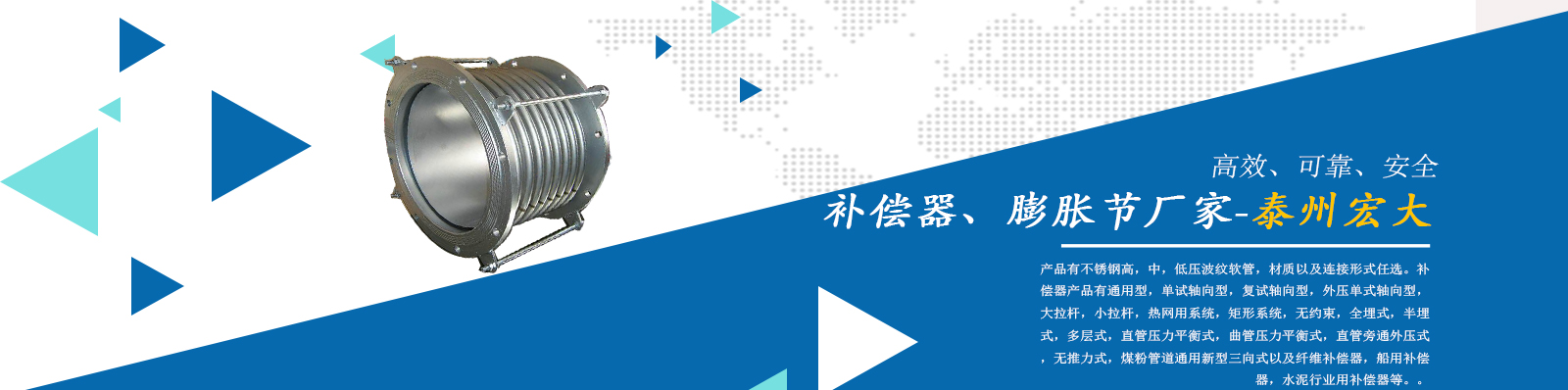 泰州市宏大機械設備有限公司是一個企業內部管理嚴謹,工作作風穩健,職工素質水平較高,經濟實力雄厚,產品質量放心,外部形象良好的企業。本公司專業從事補償器廠家,膨脹節廠家,膨脹節補償器,其中有不銹鋼高,中,低壓波紋軟管,材質以及連接形式任選。補償器產品有通用型,單試軸向型,復試軸向型,外壓單式軸向型,大拉桿,小拉桿,熱網用系統,矩形系統,無約束,全埋式,半埋式,多層式,直管壓力平衡式,曲管壓力平衡…...